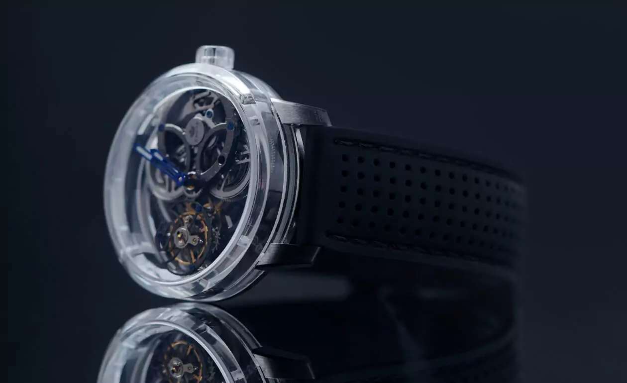 The music of the spheres is embodied in the dial of the Skyward watch. The skeletonized chronograph allows you to observe all the details of the watch and tourbillon mechanism. The transparent case adds airiness to the intricate design of the model. The mechanism seems to float weightlessly, like a celestial body.