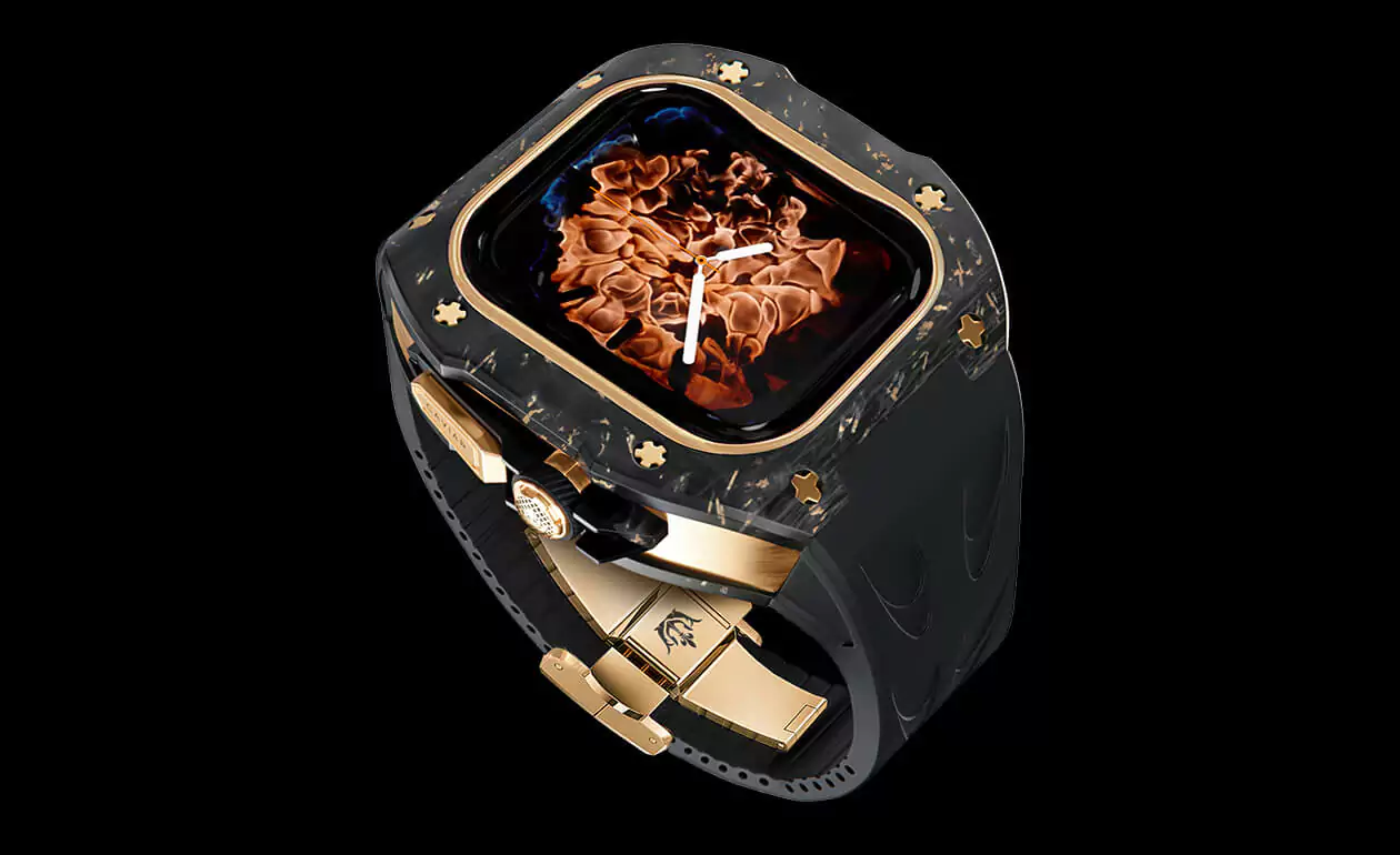 We have created a removable case for the Apple Watch in a sporty style to motivate you towards new achievements. The accessory is made from automotive-grade carbon with golden accents and features aviation-grade aluminum with a PVD coating, embodying the quality of the finest premium watch.