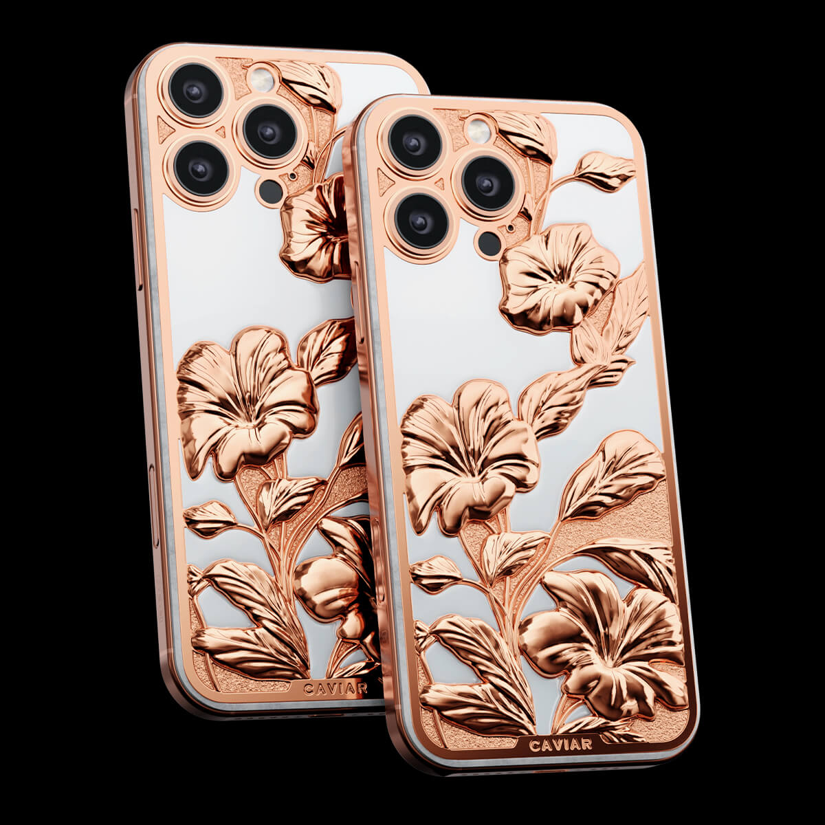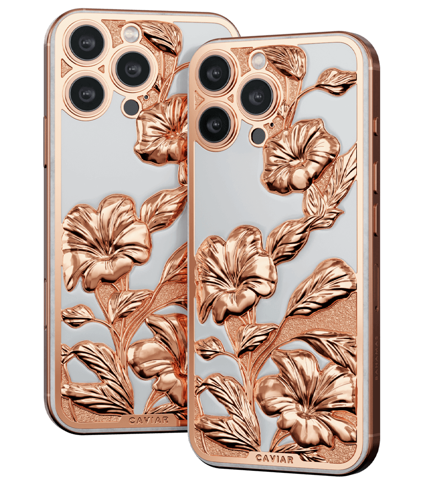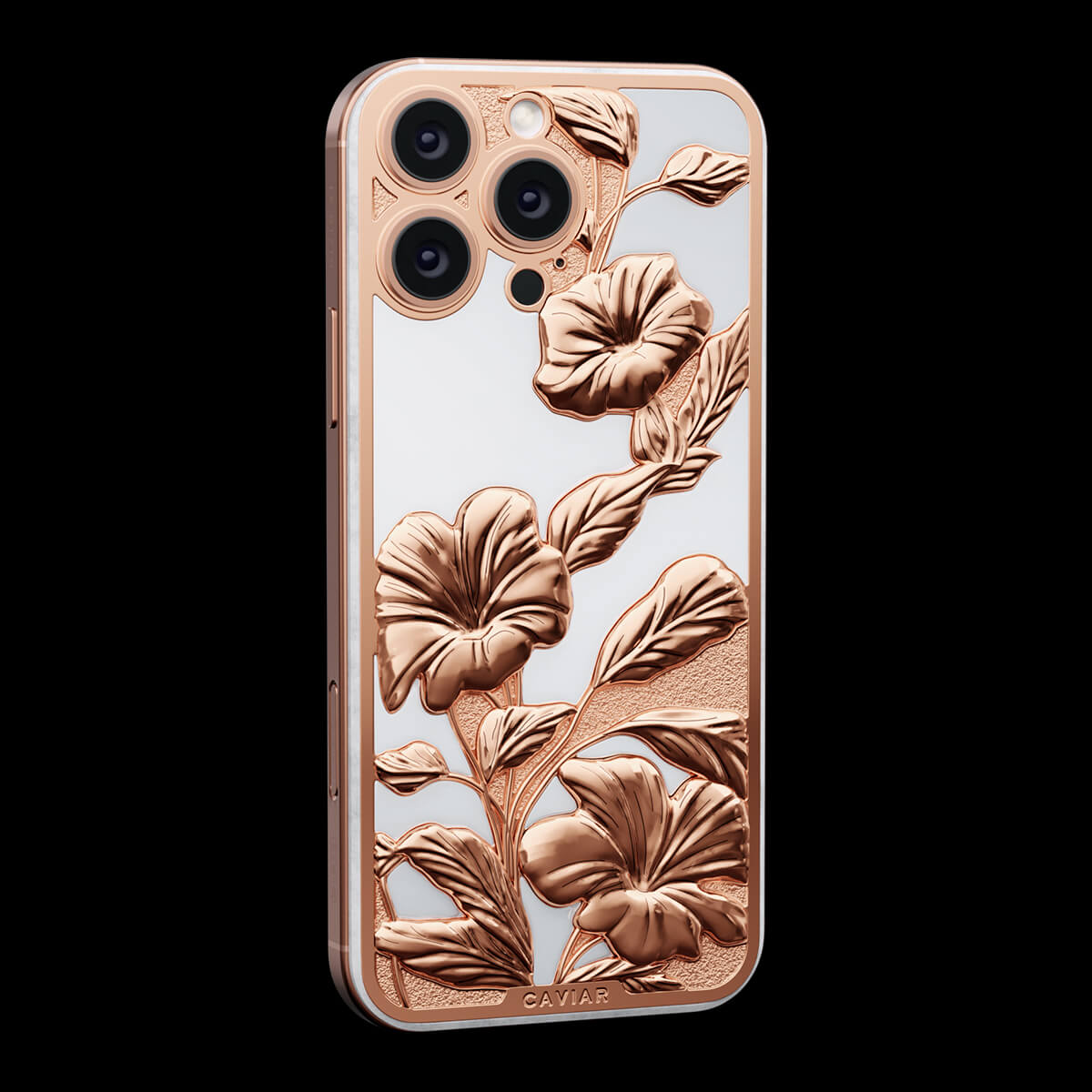 Caviar embodied the beauty of this tropical paradise in the design of a custom iPhone. The device's snow-white background is made from stone, resembling the sandy shores of the islands, while delicate floral patterns capture the fullness of the tropical flora. The pink gold framing adds warmth, echoing the sunsets reflected in the water.
