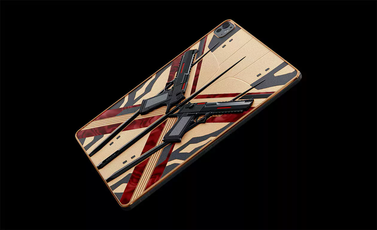 Meet the new custom iPad Pro 2024 Criss-Cross. Brutal, bold, it is designed for those who appreciate uniqueness and exclusivity. The new iPad is available in the Desperado collection and is decorated with the bas-relief of the iconic guns – Desert Eagle Mark XIX. They are known for power, lethal force and impressive design. These guns are Deadpool’s favorite weapons – the world-famous bad guy from movies and comics.