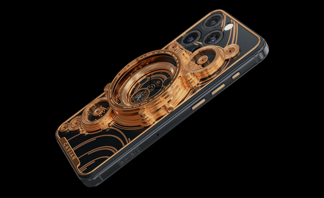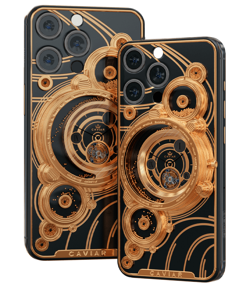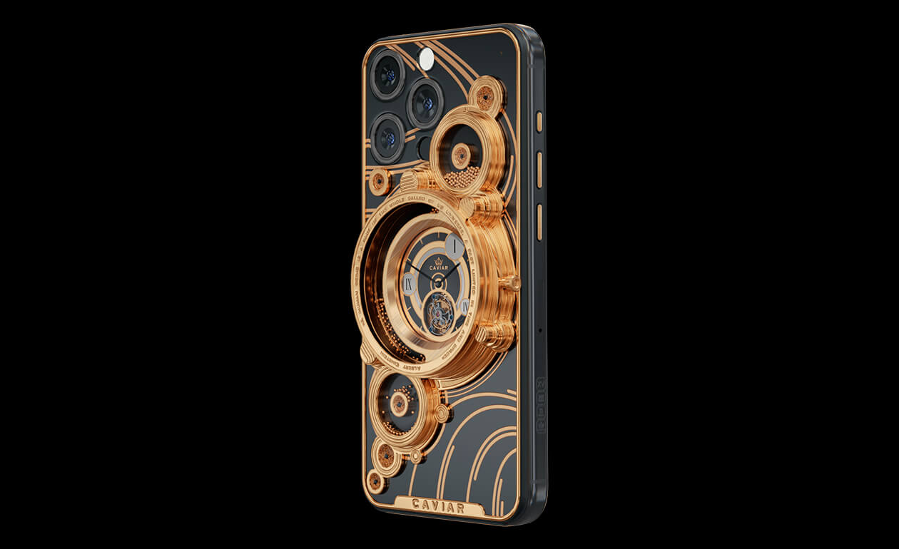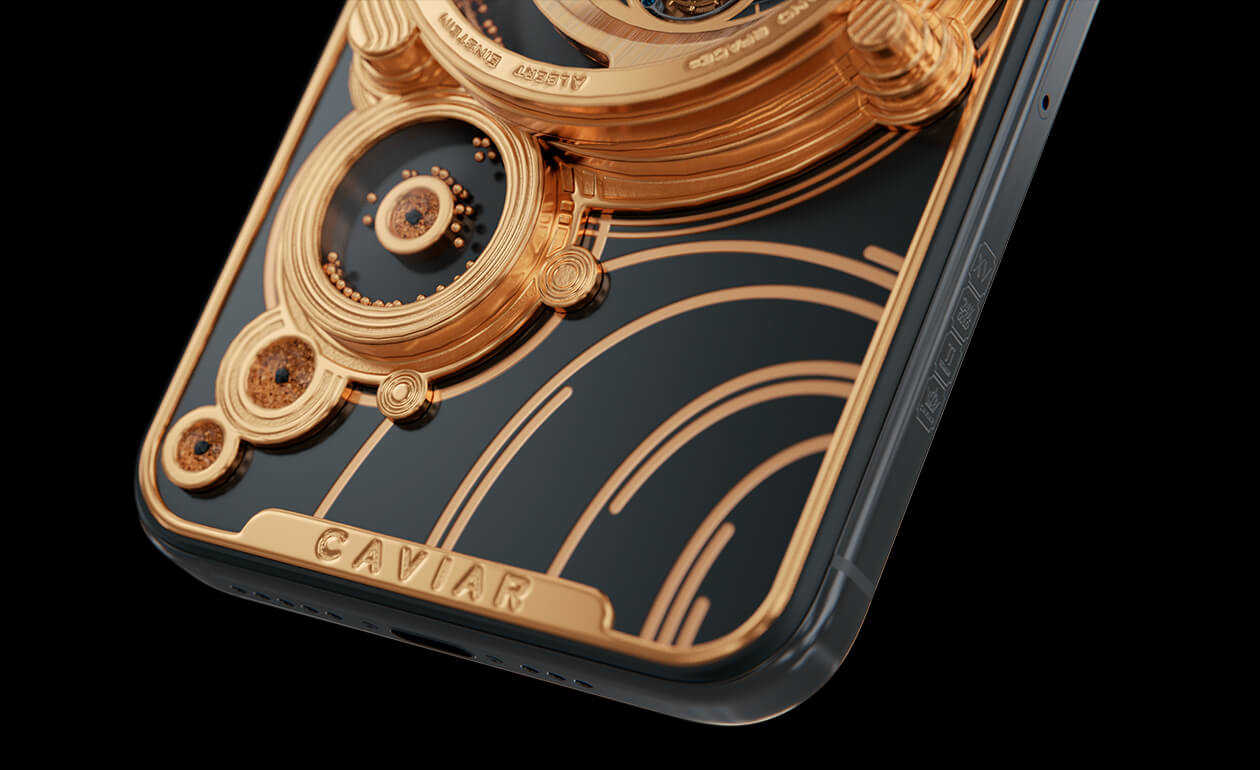 Majestic, monumental, grandiose - these are the epithets that come to mind when you first look at the Caviar iPhone 14 Pro Parade of the Planets Golden.