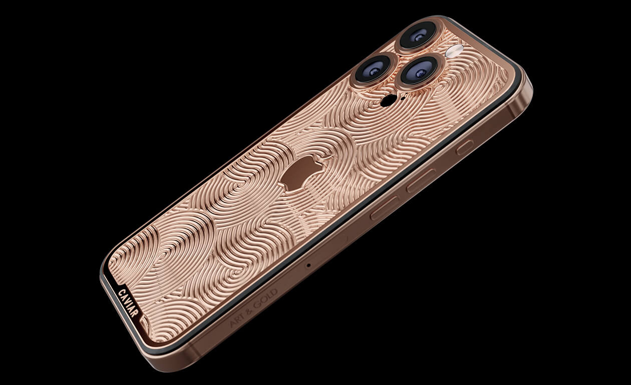 Desert dunes on the body of your smartphone. Caviar was inspired by the Desert Titanium color from the new iPhone 16 line and raised it to the absolute, repeating it in gold. Desert Gold is a gold iPhone covered with patterns that repeat the enchanting landscape of the desert. A tribute to Apple technology and the luxurious aesthetics of Caviar.