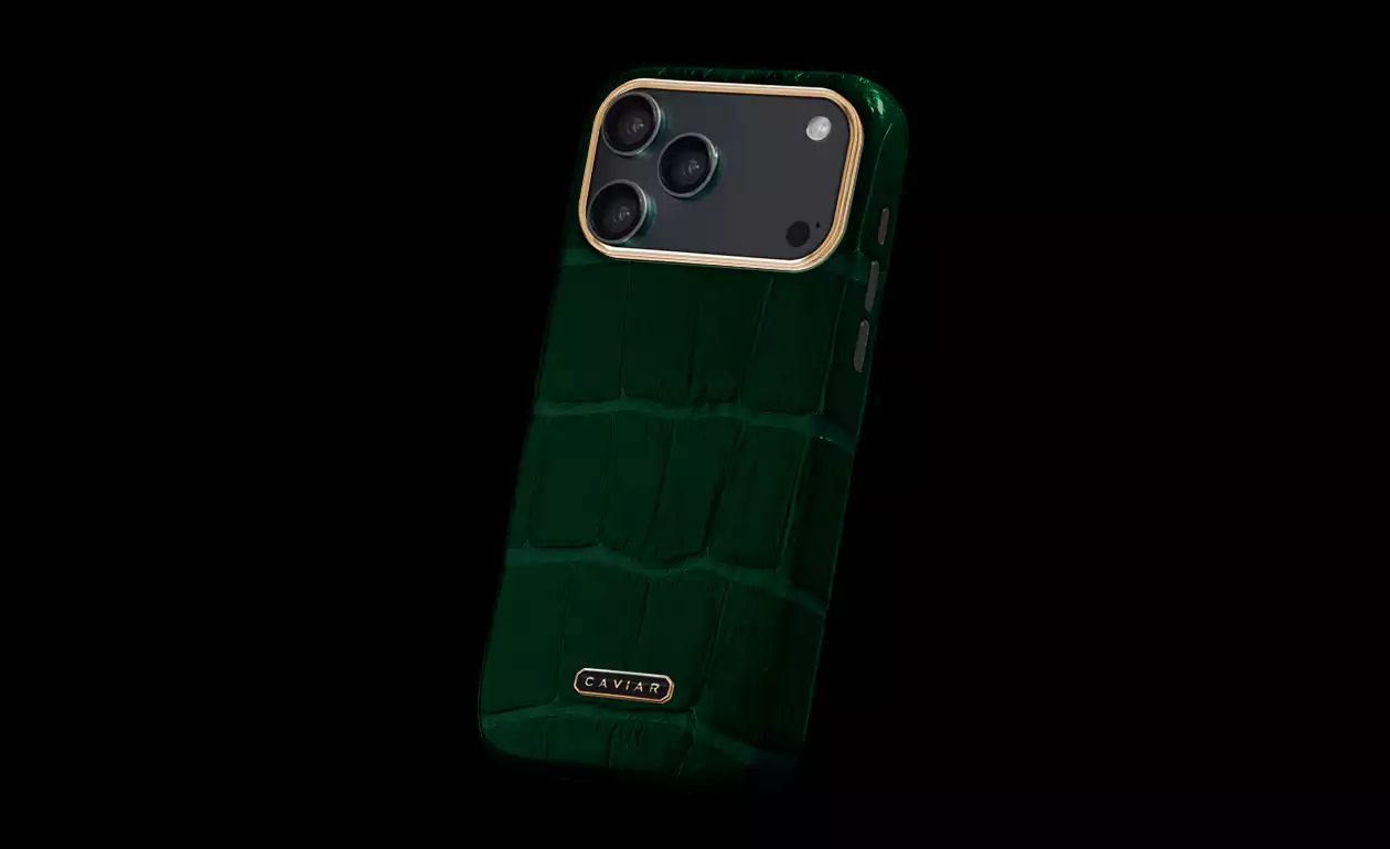 Note the new Caviar emblem, fashioned in jeweler’s enamel and double-electroplated in 24K gold (7 μm). Verdigris is ideal for those who choose accessories with character. This case highlights the strength of individuality and becomes a focal point in any look—from business to everyday.