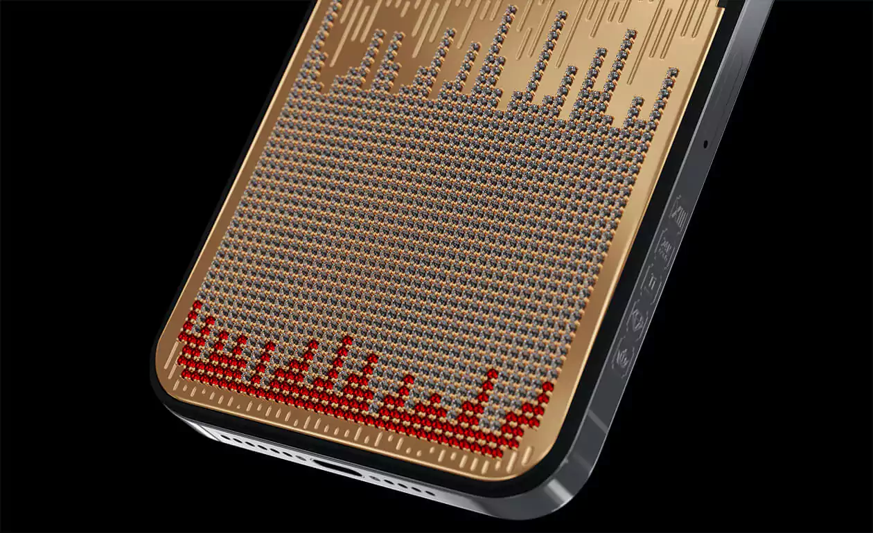 Caviar presents its own interpretation in the new Teradiamond model. The phone with the largest memory capacity in Apple's history is now also one of the most luxurious models. Caviar designers embedded 1,024 diamonds into the body of this model - to match the number of gigabytes of memory in the new iPhone 13. The purest white stones contrast elegantly with 128 blood-colored rubies that remind us of the true meaning of the word ""tera-"".