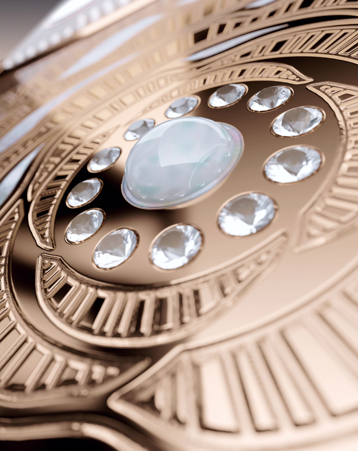The design is inspired by the refined floral motifs of leading jewelry maisons.