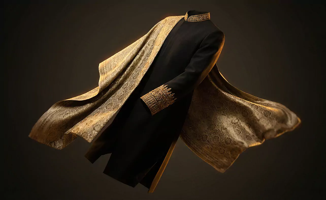 The form and silhouette of Aladdin are inspired by traditional Eastern men’s attire. In the curves and contours of its body, one can discern references to the outlines of the chapan, caftan, qaba, or entari – ceremonial garments once worn by Eastern nobility. These features lend the robot poise and elegance, as if it were clad in a virtual royal costume.
